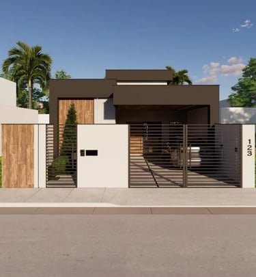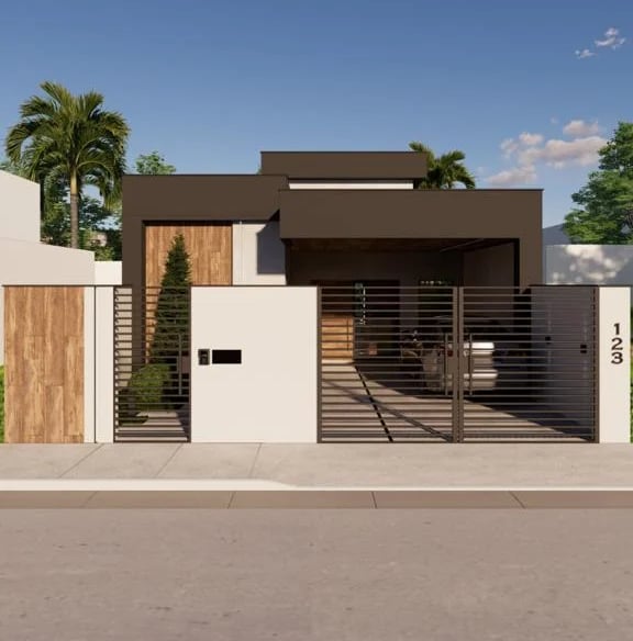 1 Suíte, 1 quarto solteiro, um banheiro social, sala e cozinha conjugada, uma área de serviço, lote 250M²